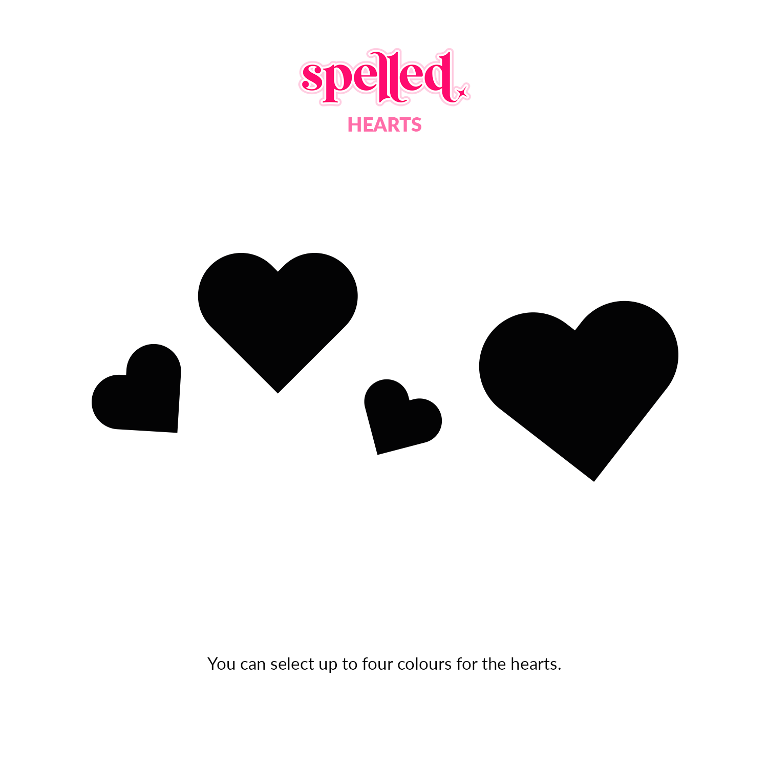 Choose one colour for the front, one for the middle, one for the back and up to four for the hearts. You've got over 40 colours to choose from.