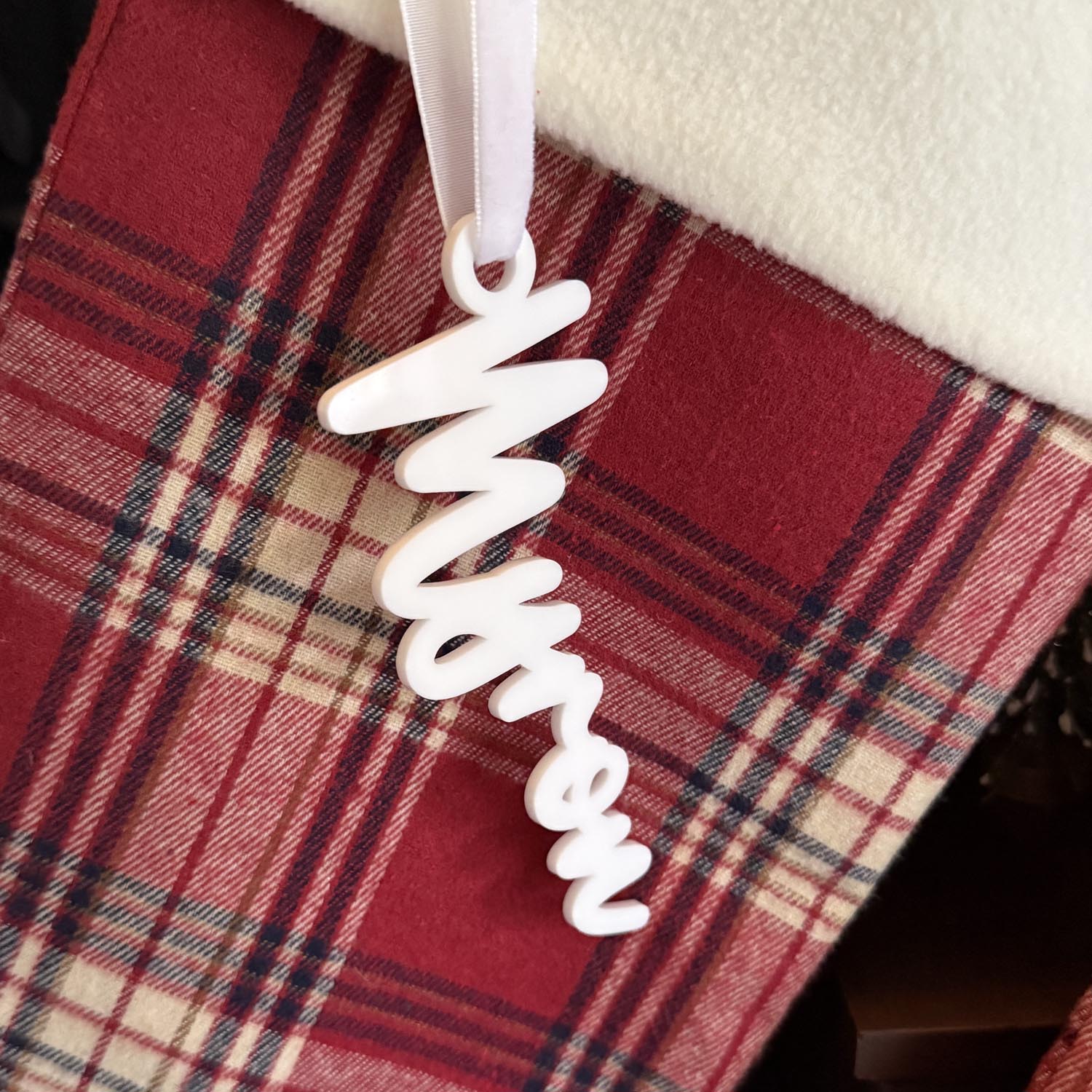 Our stocking tags can be customised with your choice of font from our range. The range for the stocking tags is more limited than some other products as it can only be made with cursive/script fonts that are connected.